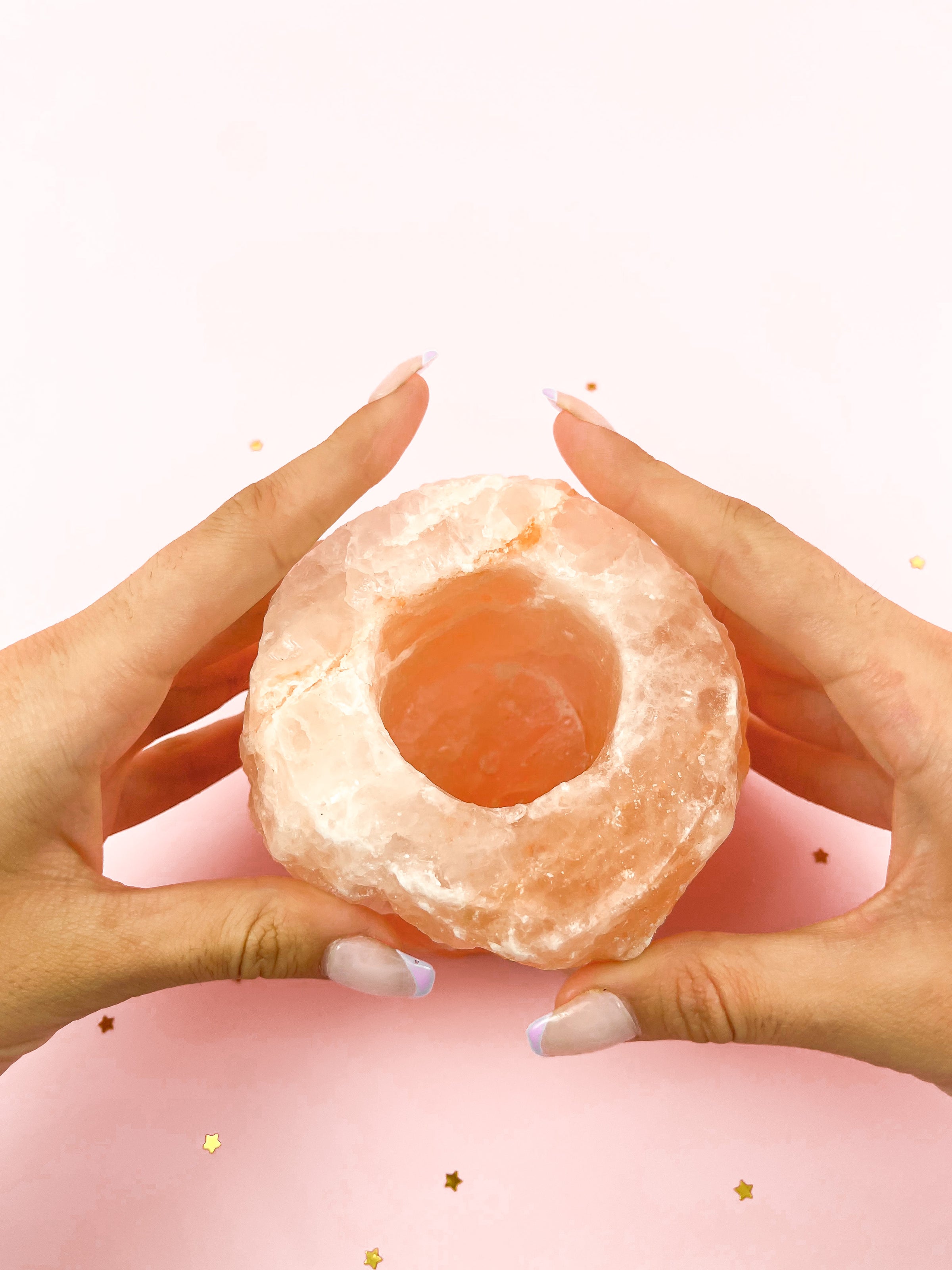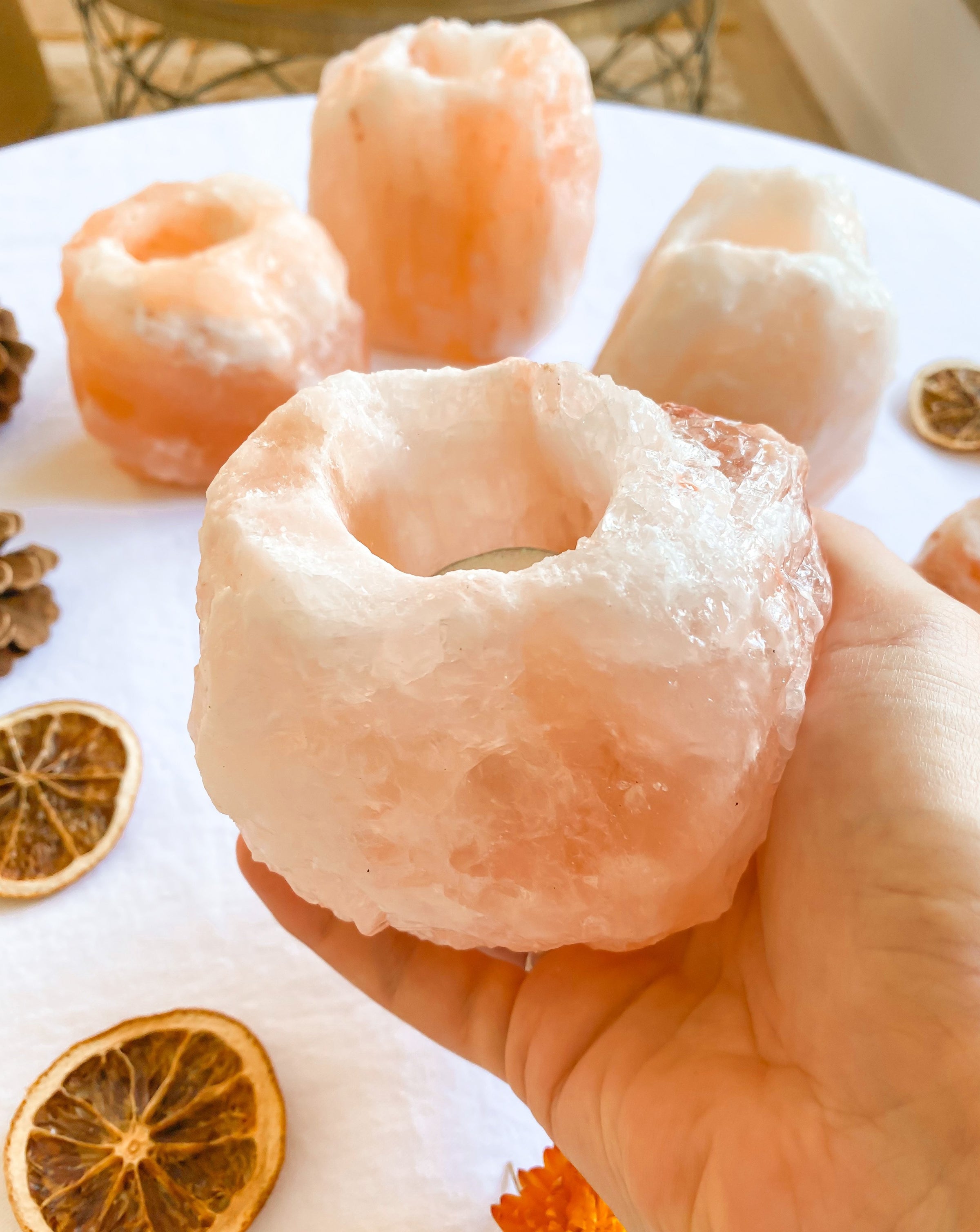 Da un toque místico a tu hogar con este precioso portavelas rústico de sal del Himalaya. Es un producto hecho a mano, por lo que cada pieza es única e irrepetible. Introduce una vela en su interior y enamórate de la tenue y colorida luz que desprende.