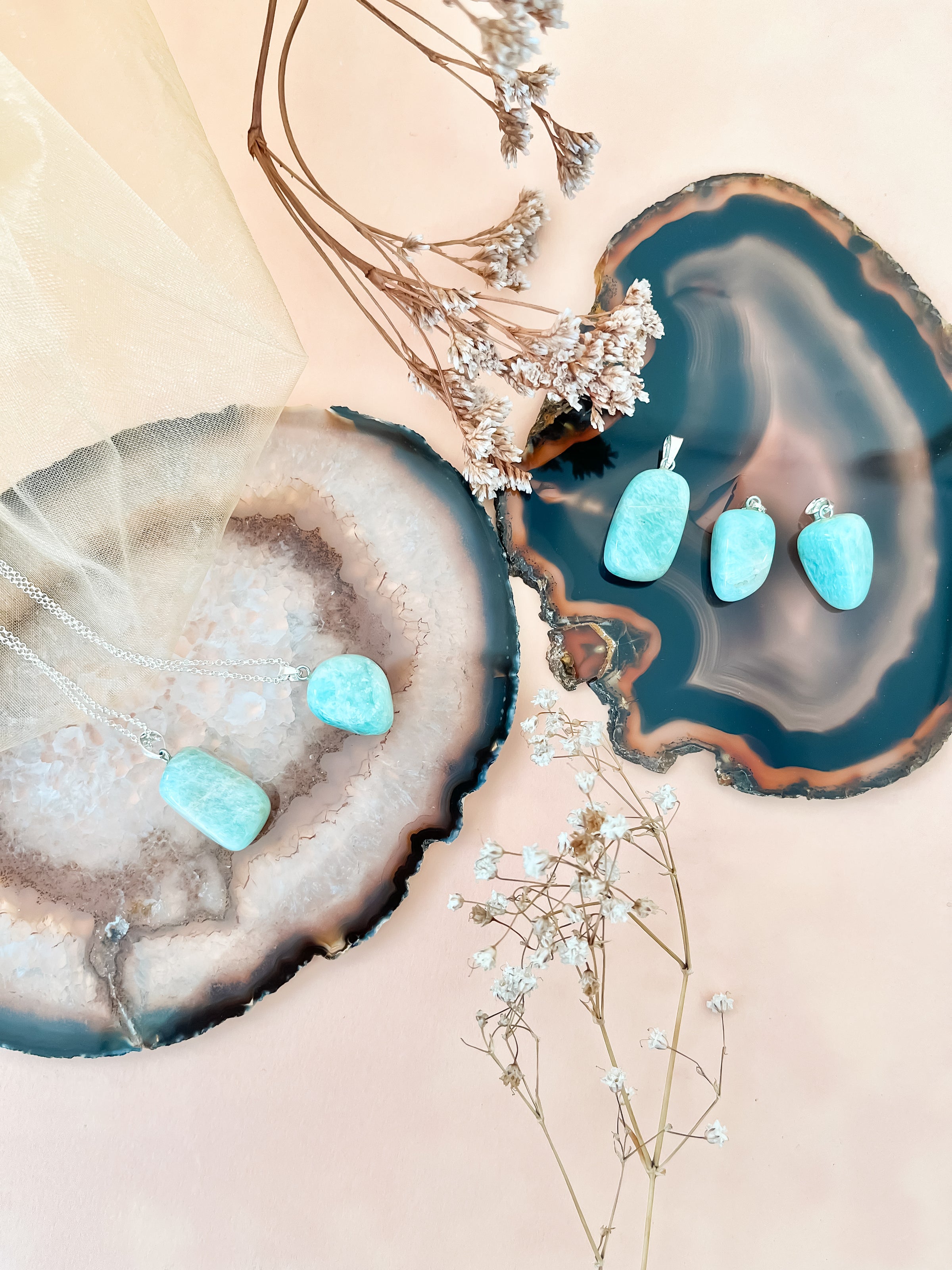 Es una piedra que te ayuda a comprobar los dos lados de un problema, o distintos puntos de vista. A nivel emocional, la Amazonita alivia los traumas emocionales, calmando la preocupación y el miedo. Disipa la energía negativa y el enfado.